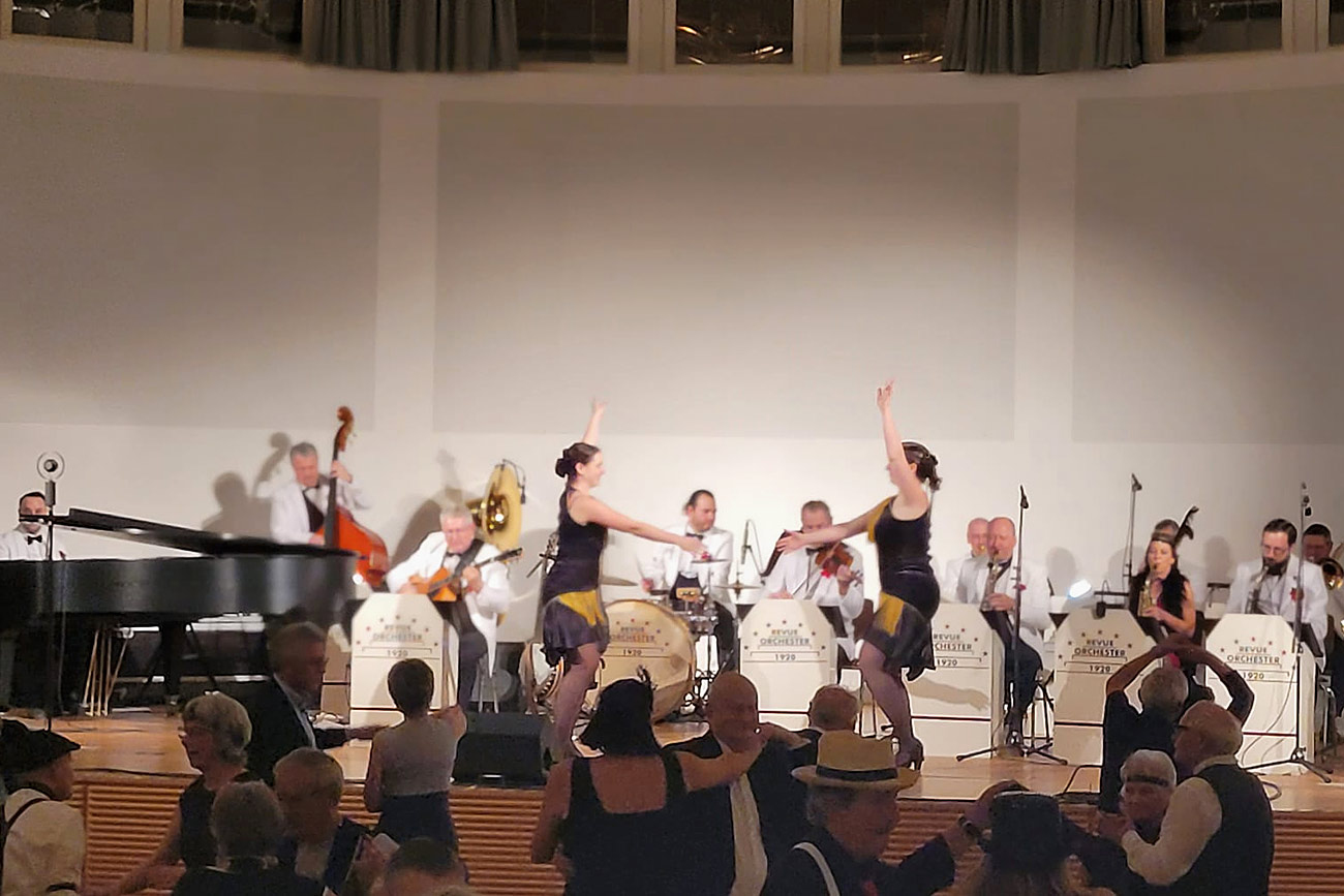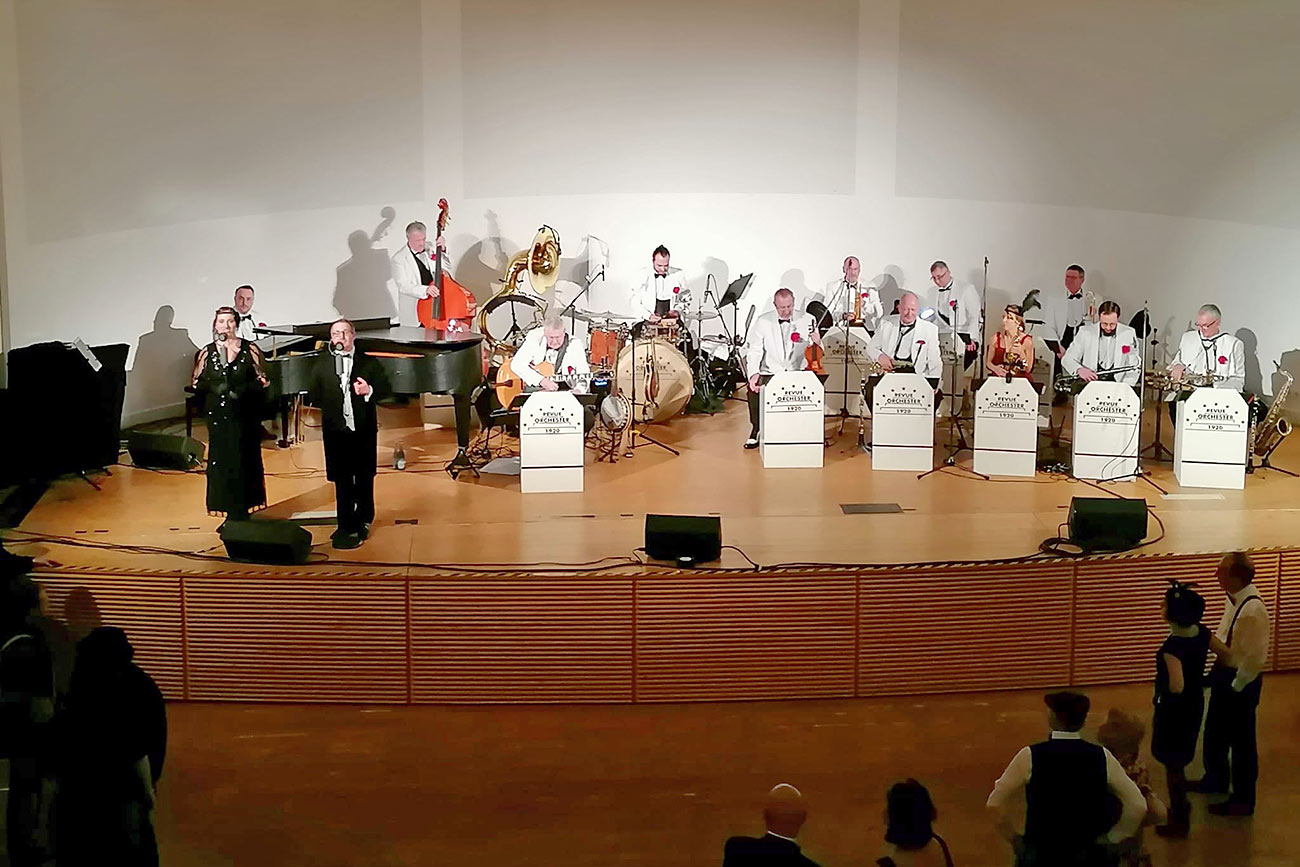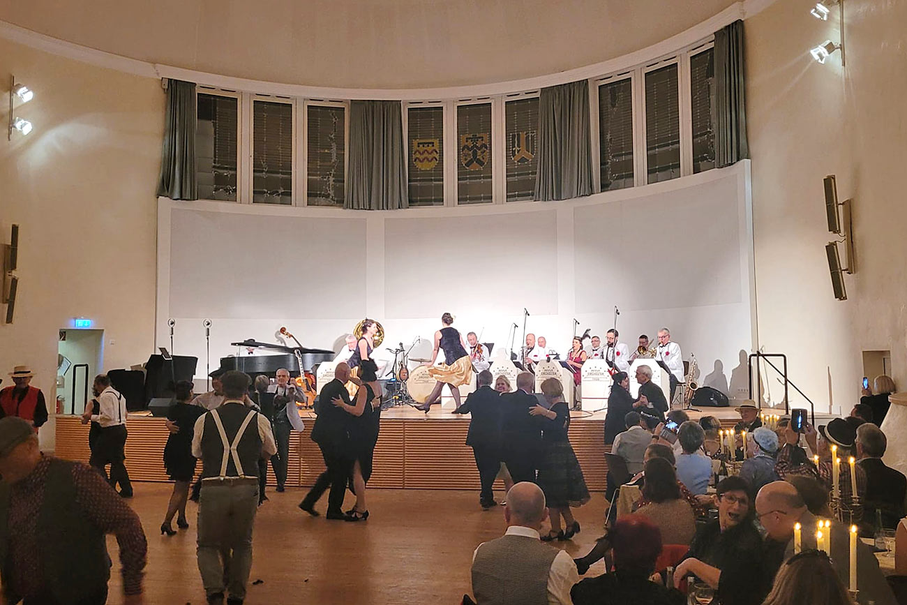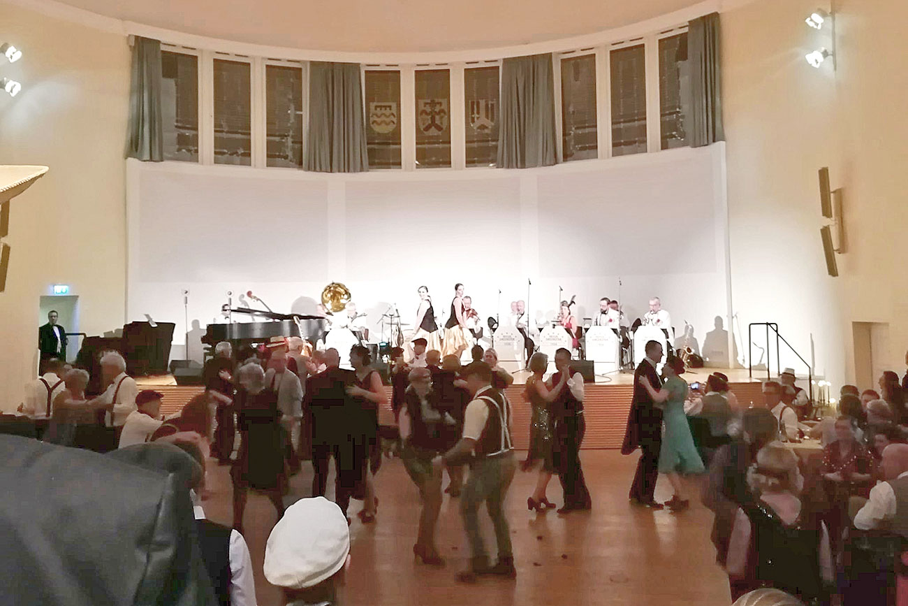 Im ausverkauften historischen Kuppelsaal zu Wemmetsweiler begaben sich unsere Gäste des „Black Bottom Club“ auf eine Zeitreise in die Tanzpaläste der Goldenen Zwanziger Jahre.
